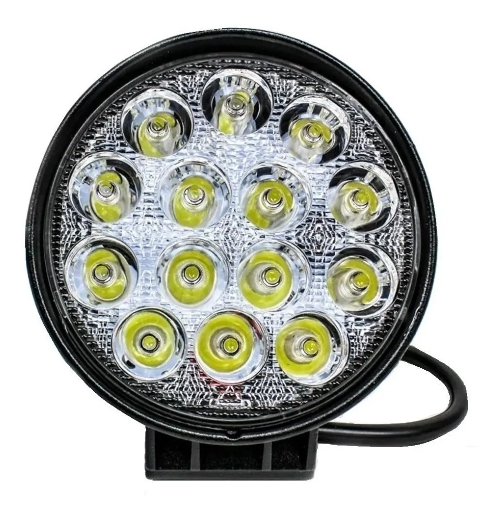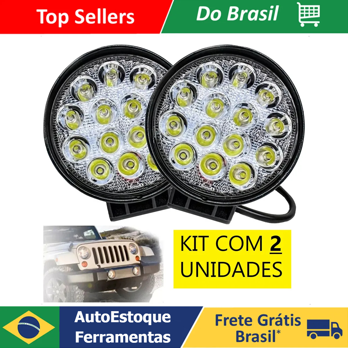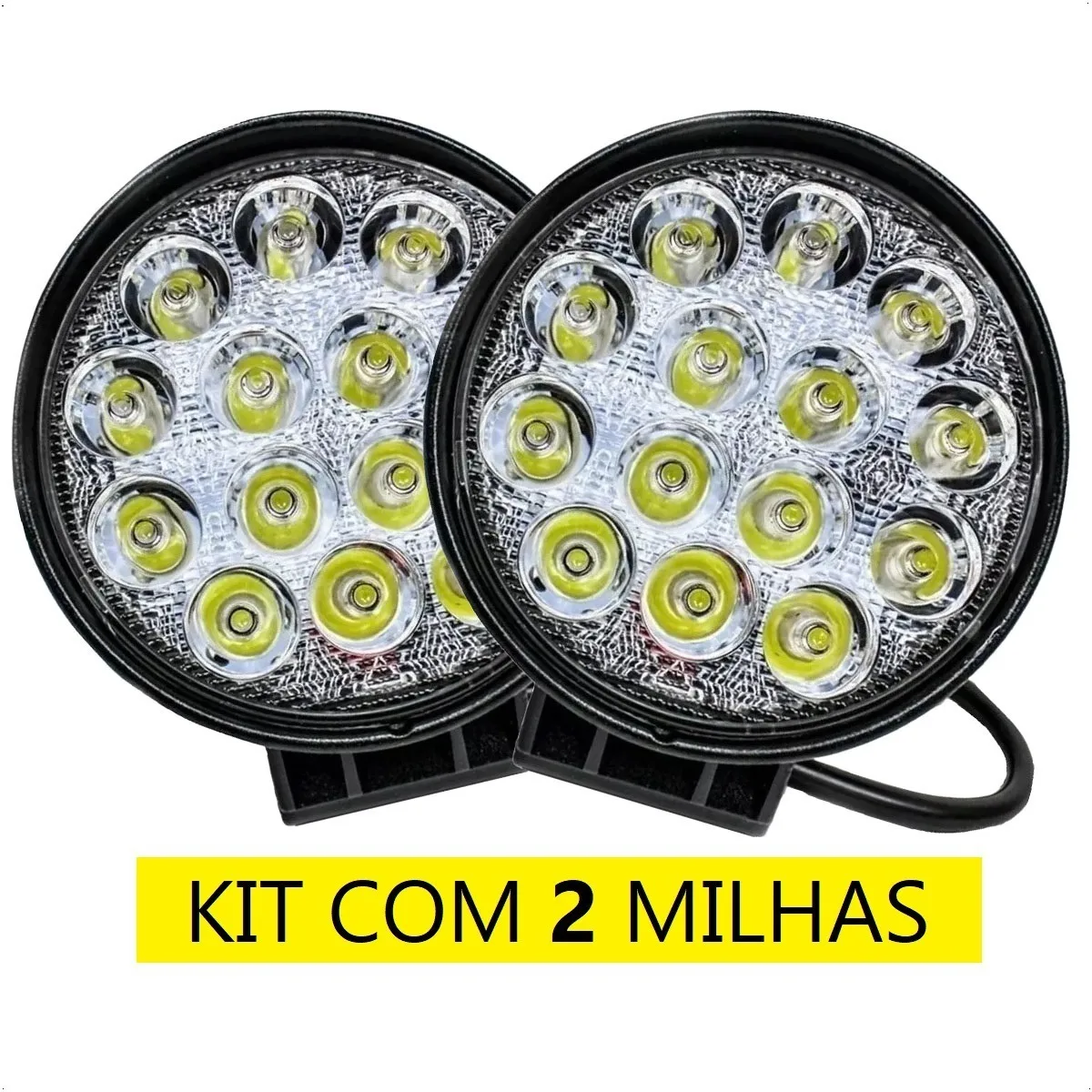 KIT COM 2 Farol 14 Leds Milha Redondo 42w 12v