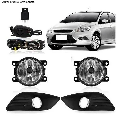 Kit farol de Milha Ford Focus 2009 2010 2011 2012 2013 com Botão Alternativo Colante Moldura Aro Cromado!